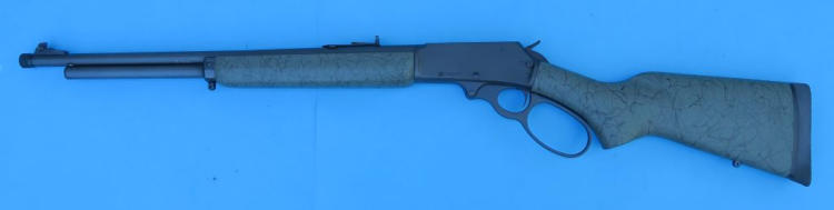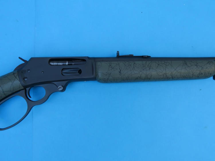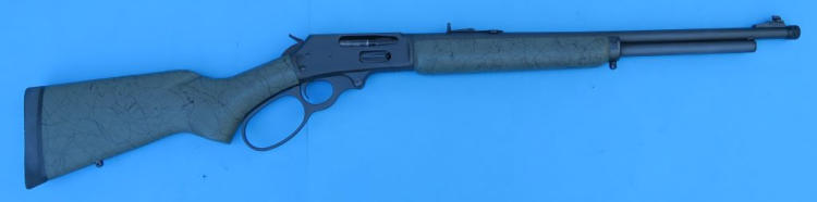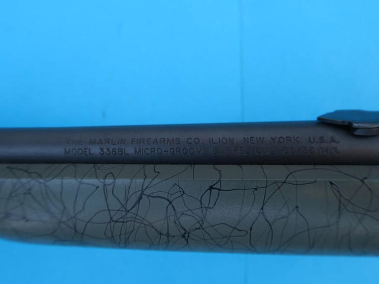 Hier gibt es eine neuwertige Marlin 336 BL mit grünem Schaft in .30-30 Win.