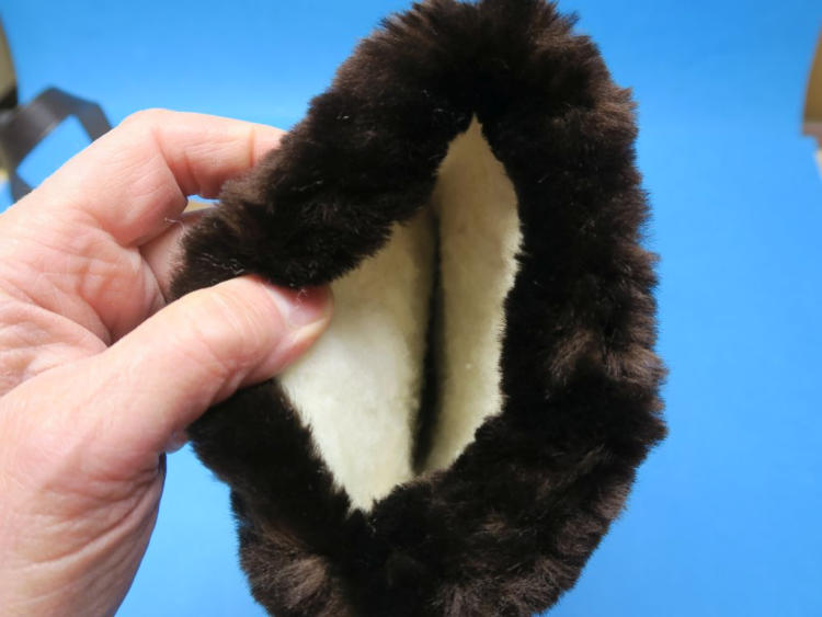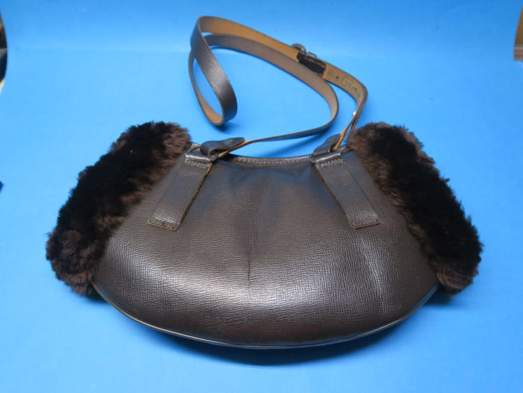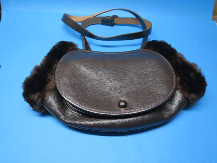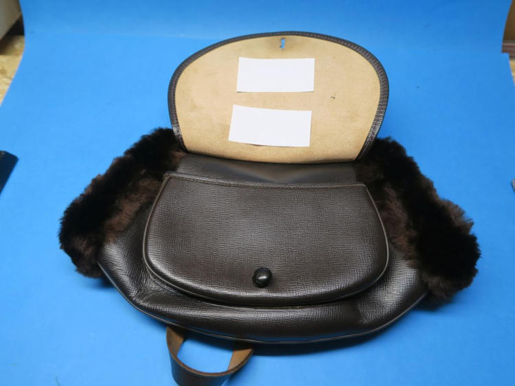 Älterer kaum benutzter Muff aus Leder mit Fell innen