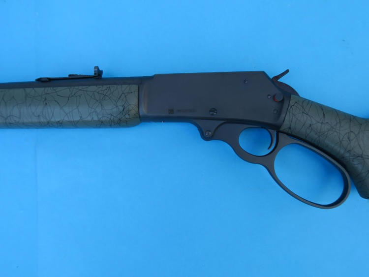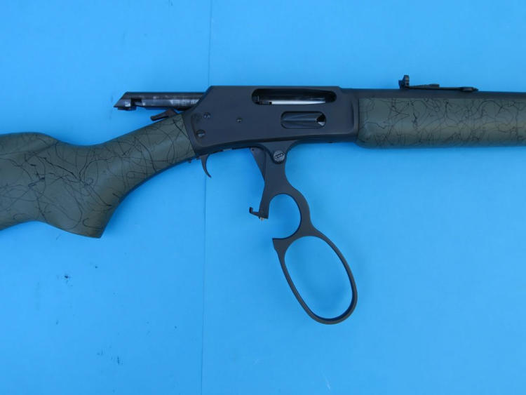 Hier gibt es eine neuwertige Marlin 336 BL mit grünem Schaft in .30-30 Win.