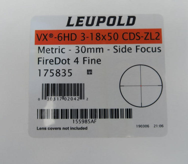 Preis: 2100,- EuroHier gibt’s ein NICHT benutztes Zielfernrohr Leupold 3-18x50 VX-6HD – CDS-ZL2 - FireDot 4 Fine – sozusagen High End!Das Long-Range-Projekt, wozu es vorgesehen war, musste ich leider verwerfen.Hier die Eigenschaften:•30mm Tubus•Zoom / Schnellverstellung am Okular•Anbaubarer Zoomhebel anbei•Absehen in 2. Bildebene•FireDot 4 Fine – Absehen (dimmbarer Leuchtpunkt)•Matt schwarzes Finish•Klickverstellung 1cm/100m (Metric)•Verstellung Höhe und Seite geht einwandfrei•Linsen sind einwandfrei ohne Macken und Wischspuren•Batterie CR 2032 dabei•Länge ohne Kappen: ca. 34,0 cm•Gewicht ohne Kappen: ca. 605 gGebrauchtwaren aus Privatbesitz - Privatverkauf, keine Rücknahme, Umtausch oder Gewährleistung. Der Käufer erklärt sich damit einverstandenAnsicht/Abholung nach Absprache möglich. Auf Wunsch gern weitere Fotos per e-mail.Ich verkaufe grundsätzlich nur innerhalb Deutschlands. Wer dennoch aus dem europäischen Ausland diesen Artikel gerne kaufen möchte, fragt bitte vorher an - danke.Basically, I only sell within Germany. If you would like to buy this item from other European countries, please inquire beforehand - thank you.