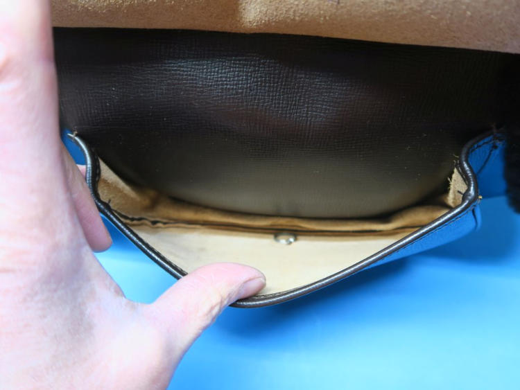 Älterer kaum benutzter Muff aus Leder mit Fell innen